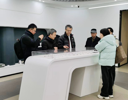 在公司展厅,领导一行参观了350vip浦京集团仪器的发展史和产品陈列墙,详细了解了公司测量电容传声器的生产情况,以及新款的AWA6292多功能声级计销售状况。